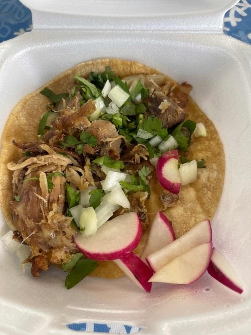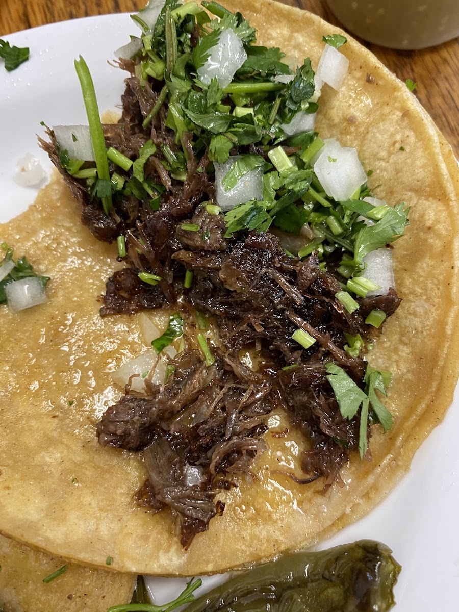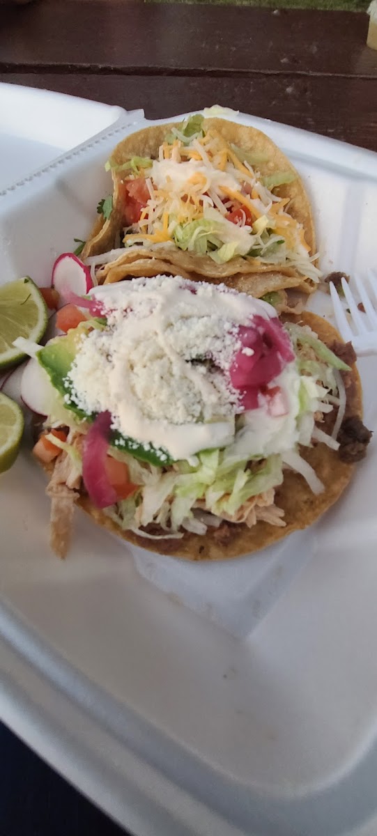 Harina de maiz, elección de res, cerdo o pollo. / corn flour beef, pork or chicken meat.